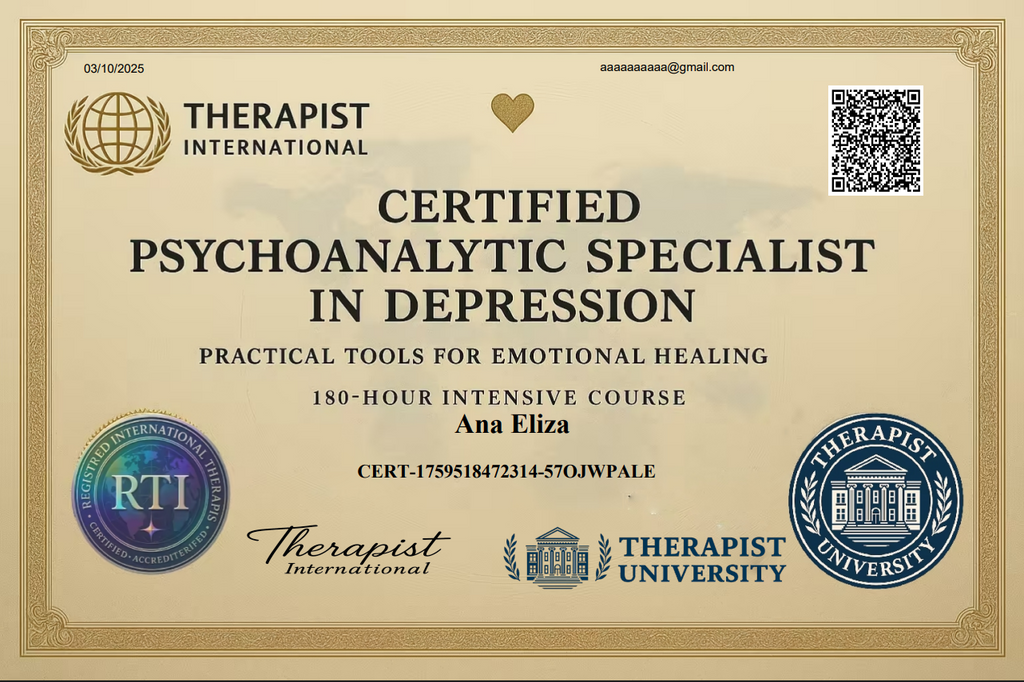 O Registro de Psicanalista Especialista em Depressão é um credenciamento emitido por instituições formadoras idôneas, confirmando que o profissional concluiu a especialização, domina a teoria psicanalítica aplicada à depressão e realizou prática supervisionada na área.